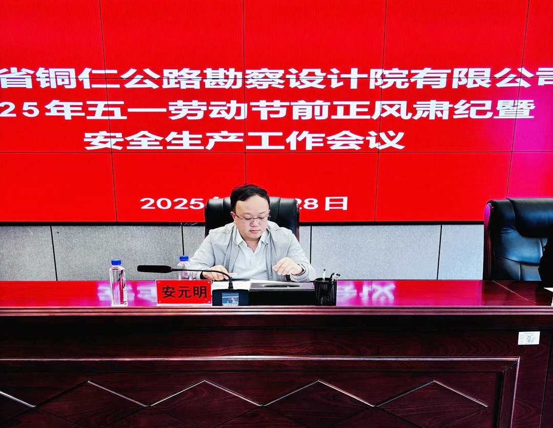 4月8日上午,贵州省铜仁公路勘察设计院有限公司召开2025年五一劳动节前正风肃纪、安全生产工作部署会,公司全体干部职工参加会议,党支部书记、董事长安元明主持会议。
